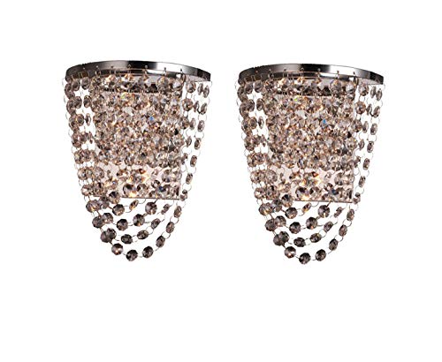 ❤ Crazy Deals Zichen lighting Crystal Wall Lights A Pair 2Pcs E12 Modern Cognac Color K9 Crystal Mirror Stainless Steel Wall Lights Wall Lamps Sconce Night Light Lamps Fixtures Lights (Chrome)