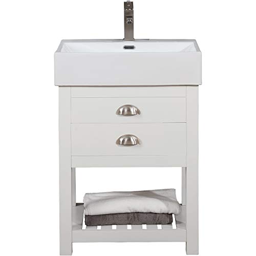 ebay LUCA Kitchen & Bath LC24RWP Helen 24 in. W x 16.5 in. D Single Sink Farmhouse Console Vanity Set in Pure White Integrated Porcelain Top
